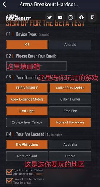1、玩家可以需要进行选择自己的设备,然后填写自己的邮箱。