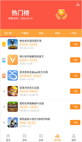 4、排行榜这里可以查看软件、单机、网游、下载榜等等的热度排行榜;
