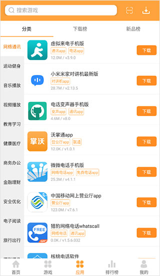 3、应用这里提供了很多类型的软件,如网络通讯、运动健身、音乐播放、教育学习等等;