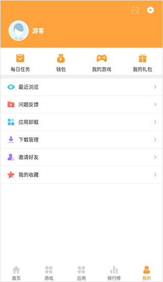 5、我的这里提供了很多每日任务,还可以查看自己的游戏、下载管理等等。