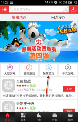 3、在虫虫助手下载有着大量的破解游戏,点击下载你想要的破解游戏,打开后就是破解版的呦~