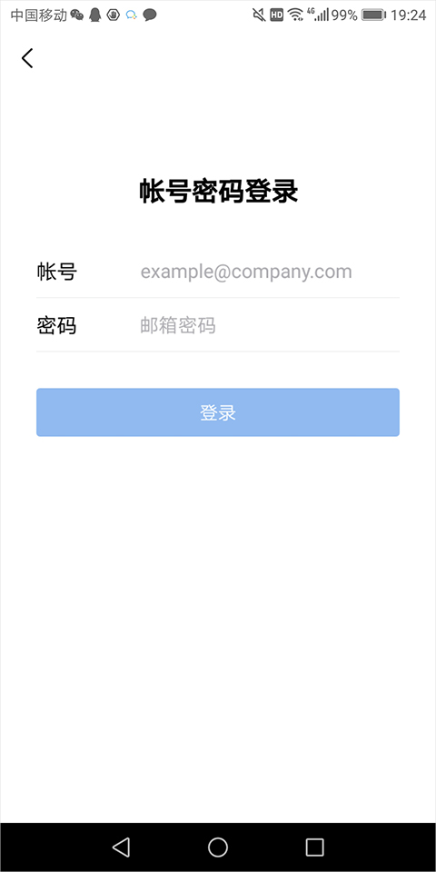 3、也可点击【账号密码登录】,用与企业微信绑定成功的邮箱账号进行登录