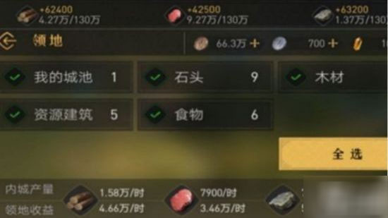 在城内玩家可以建造一定上限的资源建筑生产资源,可以和其他建筑单位一样升级提升生产量。