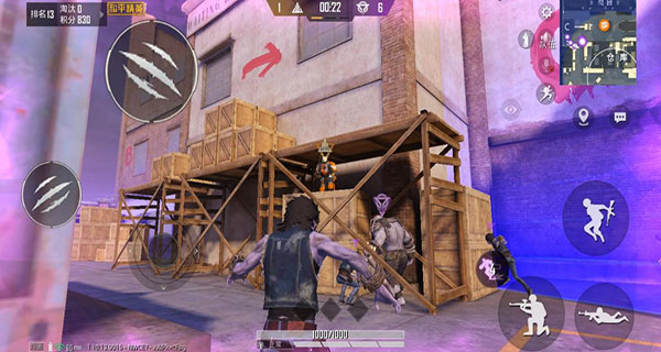 这样,一方面能有效躲开子弹,另一方面还能淘汰对手。当然,还可以适时从侧面开枪。不过,我们还要留意左右两边有没有其他的对手。