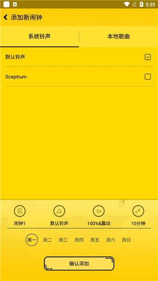 4、然后调节你的音量大小和响铃的时间间隔,点击确认添加即可;