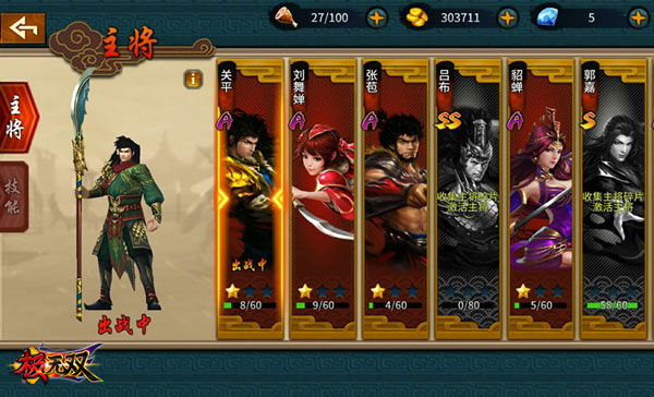 无双:点击无双按钮,若怒气值已满则可释放主角必杀技;