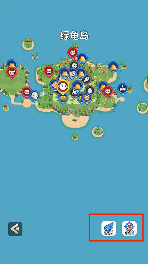 2、进入地图界面,可俯瞰整个绿龟岛,玩家可根据需要选择【传送】或者【定位】,