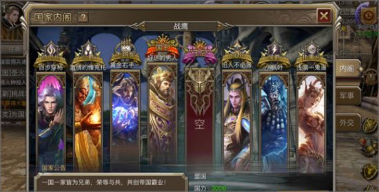 自由模式:开服第五天起,自由宣战模式解禁,国王和首相可自由向其他五国发起国战。