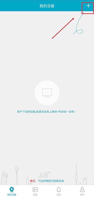1、打开IPC360监控app,在我的设备界面中点击右上角+号