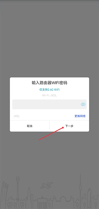 4、将设备接通电源后,输入路由器密码点击一下步