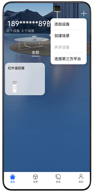 打开荣耀智慧空间 App,在首页点击右上角+,选择创建场景。
