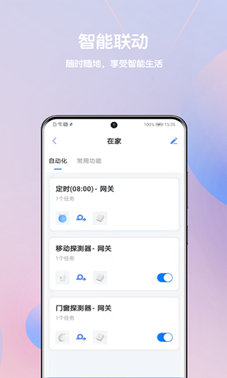 家庭卫士app是一款实用的智能家居系统控制软件,提供了强大且易用的控制系统,帮助用户解决了外出时担心设备以及安全问题,可以将设备与软件绑定后就可以实现实时联网控制家中的设备,并且还可以分享给家人方便家人实时的了解到家中情况。除此之外,该软件还有智能监控的功能,可随时随地查看家中情况,出现异常行为会第一时间进行报警,帮助用户减少财产损失。另外软件还实现家居智能化,动动手指就可以将灯光关闭、窗帘关闭进入睡眠模式,外出时一键将门设置成防盗模式,以及用电的安全问题,最大程度的避免了孩子误触电的问题。
