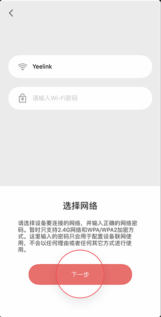 5、根据屏幕指令在无线网络列表中选择对应的Wi-Fi 网络后返回至Yeelight App,等待连接成功即可