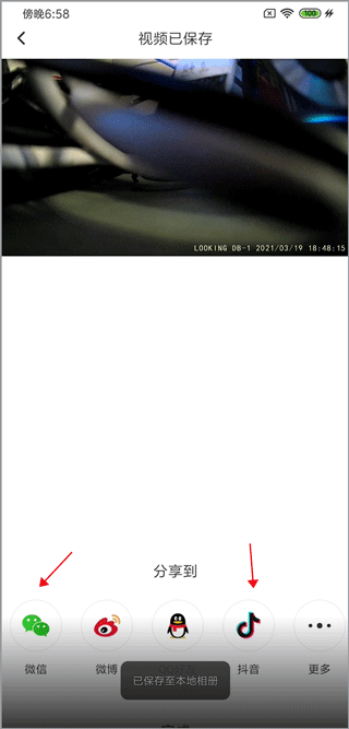 4、合成完后自动保存至本地相册,这时即可分享至抖音、微信等平台了