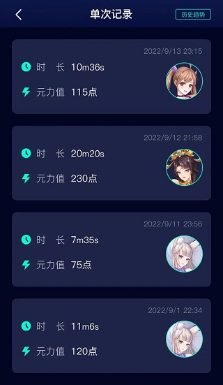 每次冲完,还有个元力存档,记录你的时间,元梦天使还会对你进行战绩评价,让你改进。 如果你的时长和频率达到一定级别,还会给你奖励元力值。