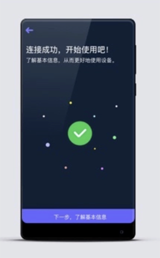 5.连接成功后应用会有连接成功提示,此时设备指示灯会保持常亮。点击「下一步」了解易休air的设备信息