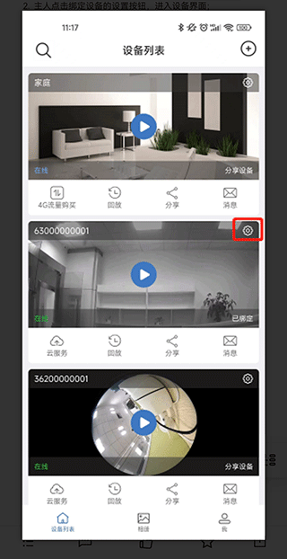 一、打开Smaint摄像头app,点击绑定设备的设置按钮,进入设置界面