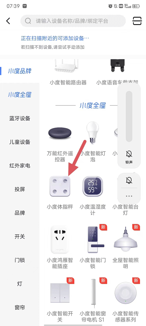 --对小度音箱或小度智能屏说“小度小度,连接体脂秤;