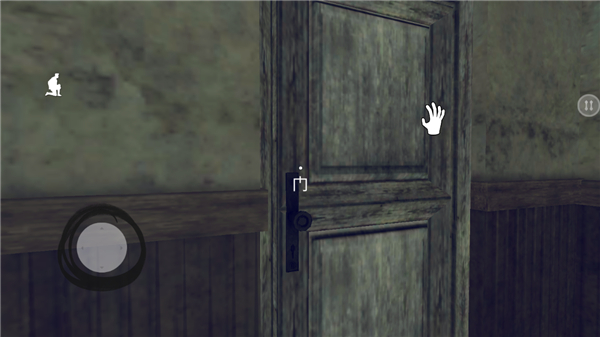 3、左边控制角色的方向,右边每次碰到物品就会出发相关功能键,比如我们点击手掌就可以打开房门;