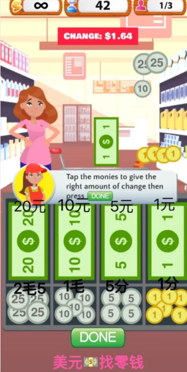 3、计算找零,从杂货店拿金币。看你能不能完成超市收银的所有关卡。