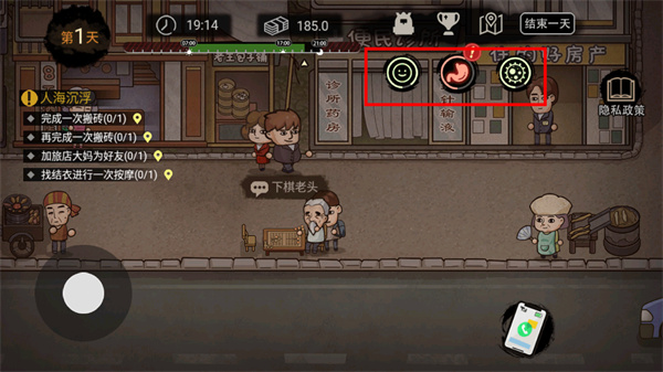 游戏里有丰富的关卡和任务,玩家需要完成不同的工作才能解锁更多内容。如果你想赚钱,最快的方式就是做兼职,比如搬砖、捡垃圾或者下象棋赢钱。游戏还加入了健康系统和情绪管理,这些都会影响你的工作效率。如果你想结婚,就需要先赚够钱租房子,然后再提高好感度。