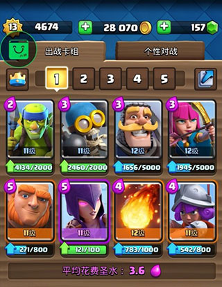 4、收集皇室战争家族成员和您熟悉的《部落冲突》军队,法术和防御建筑等卡牌,打造和升级您的卡组。