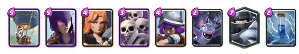 这套卡组以气球为核心,搭配武神或者超级骑士这两个前排很容易进塔,对空同样也有女巫和火枪手两张强力对空,超级骑士在低分段更是所有萌新的噩梦
