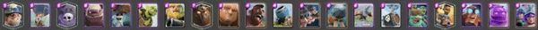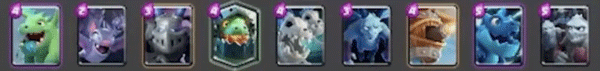这套卡组以野猪和飞桶为核心,可以不断蹭血,4张aoe更是绝对克制人海战术,武神小皮卡骷髅海的防守也可以使对方的的部队很难进塔,女巫和龙宝这两张对空已经足够(低分段没天狗)