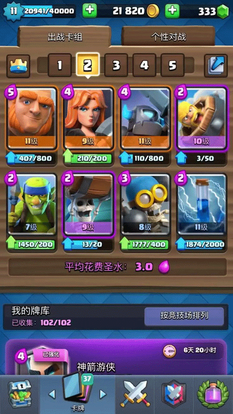 还有,不要只选初始等级高得史诗卡和传奇卡,这只是一张卡稀有等级和初始等级,代表不了一张卡的强度那么怎么才能组合成一套合格的卡组呢?