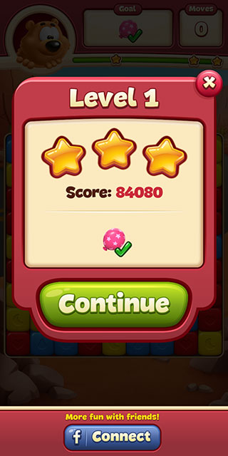 6、达成关卡目标后,剩余的步数会转化为最终评分,剩余的越多得分越高,