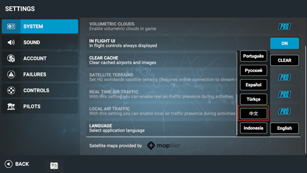 1、首先进入rfs模拟飞行中文版最新版本游戏中,点击左下角的【设置】图标