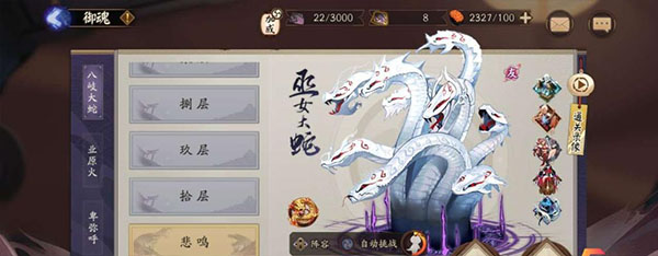 大招的多段伤害搭配爆伤茨林或者爆伤玉藻前可以轻松挂机,不过对破势要求较高,基本上需要爆伤达到250%才可以秒杀第三层大蛇身边的鬼切。