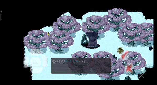 1、进入到云中樱林场景之后,首先走到左边露出黄色的地方,获得物品碎片。