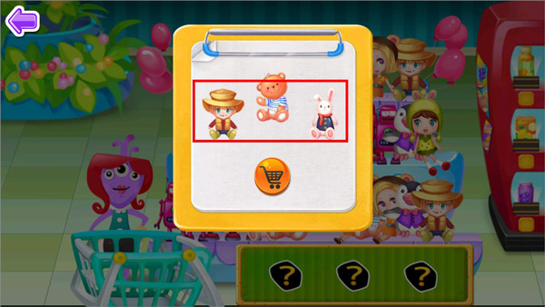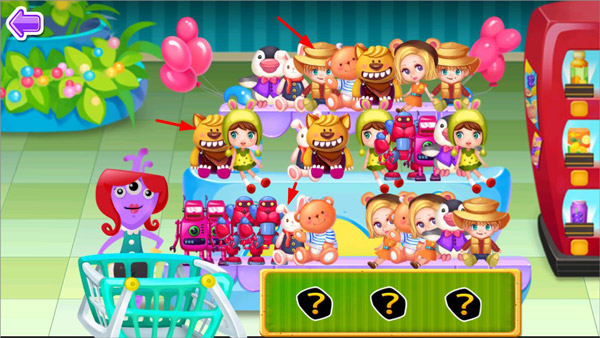 3、需要帮助顾客挑选出他所需要的,例如他想买玩偶,按照她的需求从货架上找到玩偶并放入购物篮;