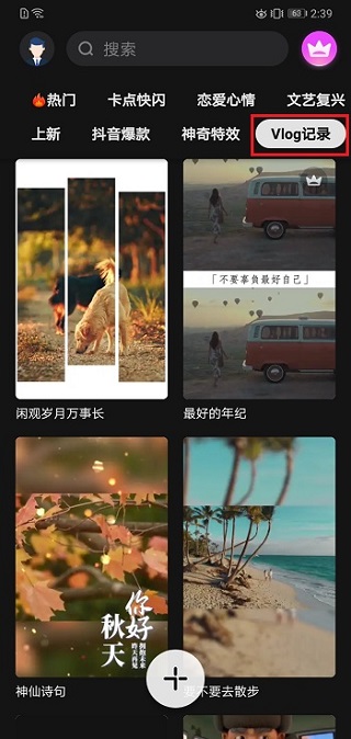 在制作视频之前,大家要明确的是要制作什么视频,最好是有着明确的风格。比如说我们要制作一个旅行的vlog视频,先在一键视频中选择“vlog记录”,然后从中挑选合适的视频模板。