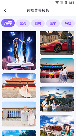 4、软件最具有特色还是替换背景这项功能,更是有多种模块任你选择。