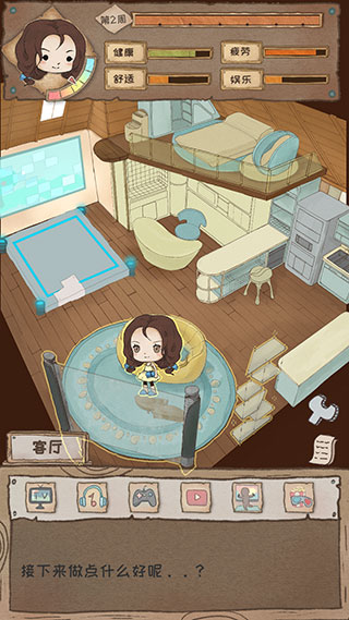 除了自由探索和布置房间之外,辞职后的一年游戏还提供了多种有趣的子项目内容,玩家可以通过玩玩游戏、画画、看电视、健身等多种方式来度过每一天,这些活动不仅能够带来乐趣和娱乐,还能为玩家带来相应的健康、疲劳、舒适和娱乐值变化,无论是追求梦想、寻找内心的平静还是享受孤独的美好时光,都值得一试。