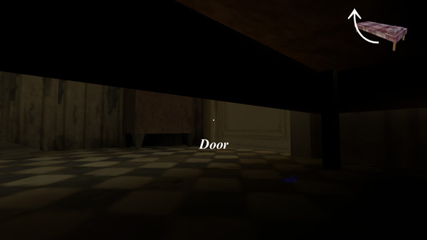 4、首先来到床边,然后蹲下,这里会有一把钥匙;