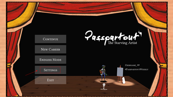 1、打开饥饿派画家手机版,点击首页的“settings”打开设置;