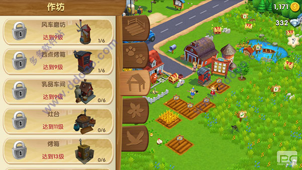 建造作坊就进入了游戏加工环节。作坊和工厂生产的商品价格会比农作物高,产生的经验值也比农作物高,所以置办作坊和工厂是必不可少的。