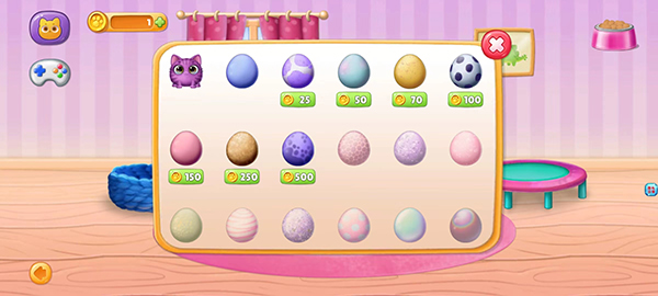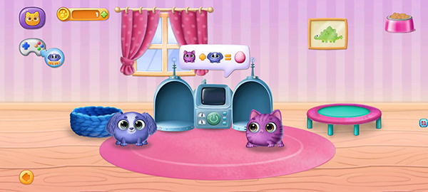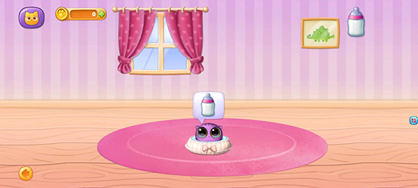1、模拟养宠物过程,孩子可以在游戏中得到可爱的小狗与小猫并与其互动;
