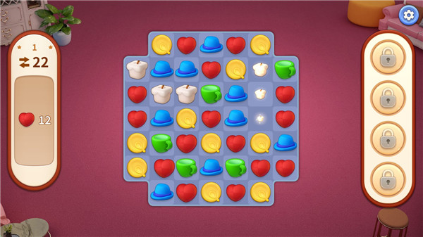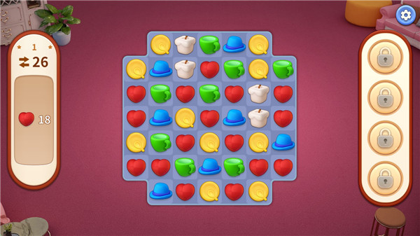 关卡的难度设计感觉还OK,并且每间屋子拆分出来需要的通关数还在可以接受的范围内。不会因为玩三消太多产生倦怠感。