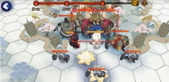花核战打法根据分布图,利用阿修罗吸引仇恨,帝释天提前放置莲花,有效避免帝释天受伤死亡(浪费勾玉复活),减低活动难度+提高效率!0练度也可通关。