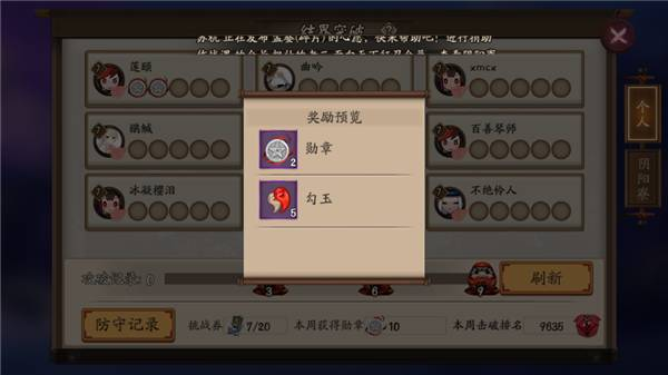 4)结界突破,这需要和玩家或者其他阴阳寮玩家对战,获得经验以及勋章、勾玉等,也可以获得比较多的经验。