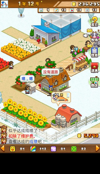 像素牧场物语中,赚钱才是核心。没钱你开不了地,互动商店升不了级,买不起列车和四样作物所需的田,要快速刷作物等级提升照片上限也需要大量的钱。全部给算下来至少也要八千万往上,所以需要从一开始就赚钱。游戏初中期的建筑布局是就这样的,三个商店(牛奶店、特产店、冰激凌车)每样摆四个,每个店前摆长椅。这样有照片就买商店的上限,一共要买十二个。这样我们每年就可以得到几百万的收入,这在前中期是非常可观的。