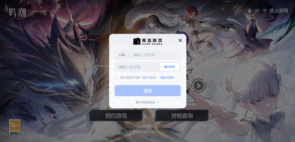 1、打开鸣潮官网:https://mc.kurogame.com/,点击资格查询;