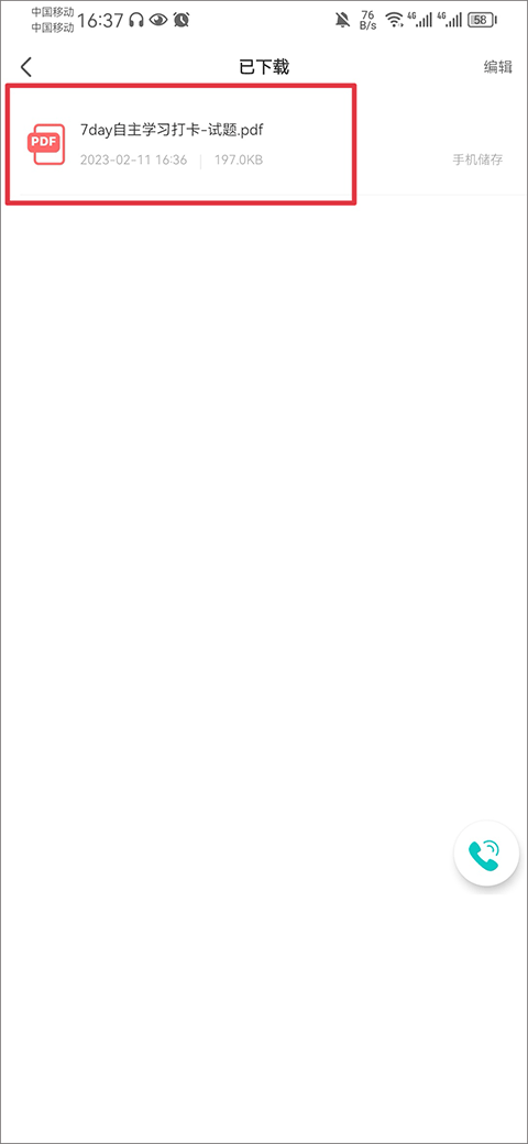 2、然后选择你要下载的资料并点击右边的下载按键,下载完成后点击右上角已下载