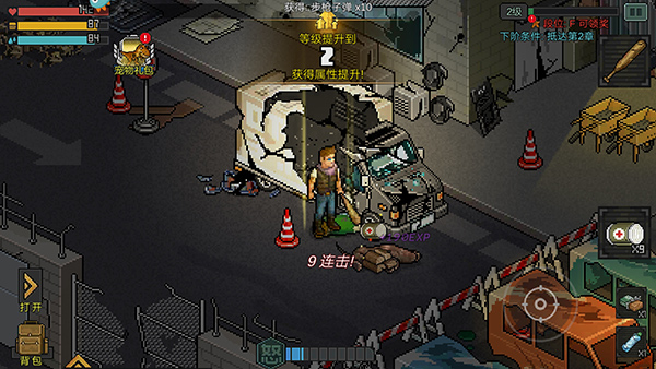 9、在这里将迎来一波波的敌人,玩家需要消灭所有敌人即可通过当前关卡,开启下一章节的闯关,以上就是像素危城新手攻略了。