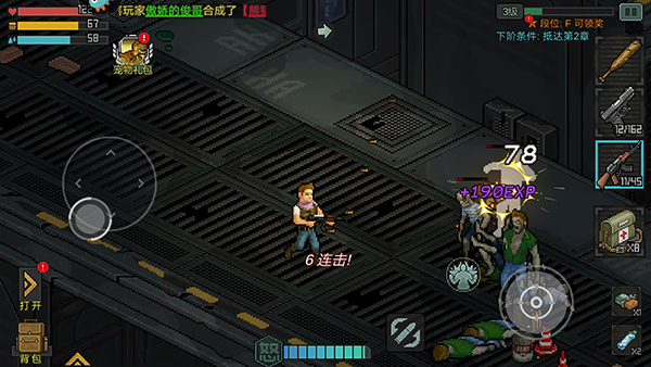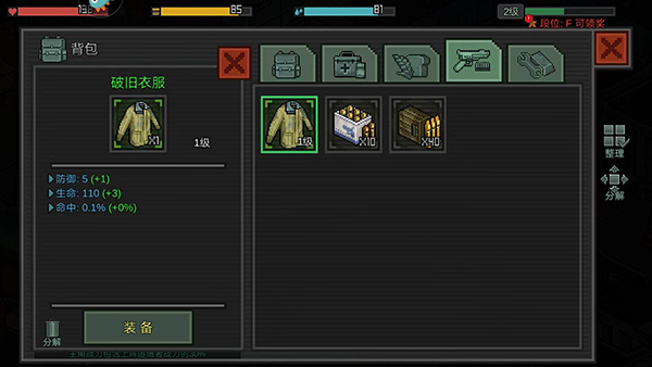 7、左下角的【背包】可以查看和使用当前的药品、装备、子弹等,