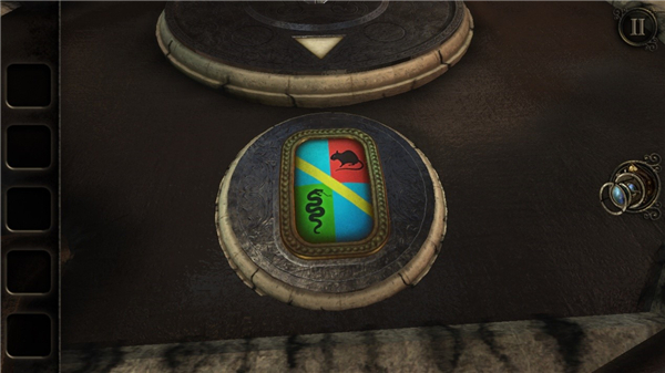 查看完毕信件后,需要双击台子侧面靠近,然后带上目镜观察,会发现台子侧面有三个谜题,而台子侧面的转筒内有对应的答案,玩家需要将正确的答案转到正面,解答对全部三道谜题,才能开启下一机关,三个谜题及其答案分别是: